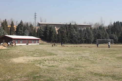 مهیاسازی زمین چمن فوتبال پردیس فنی و مهندسی شهید عباسپور
